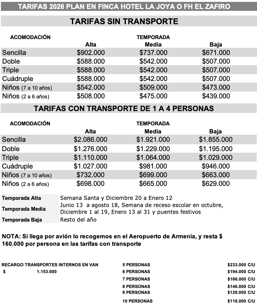 Las tarifas con transporte, incluyen: